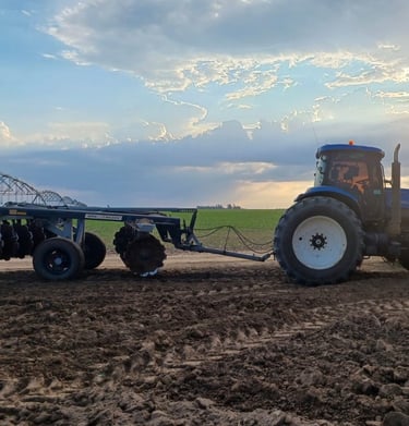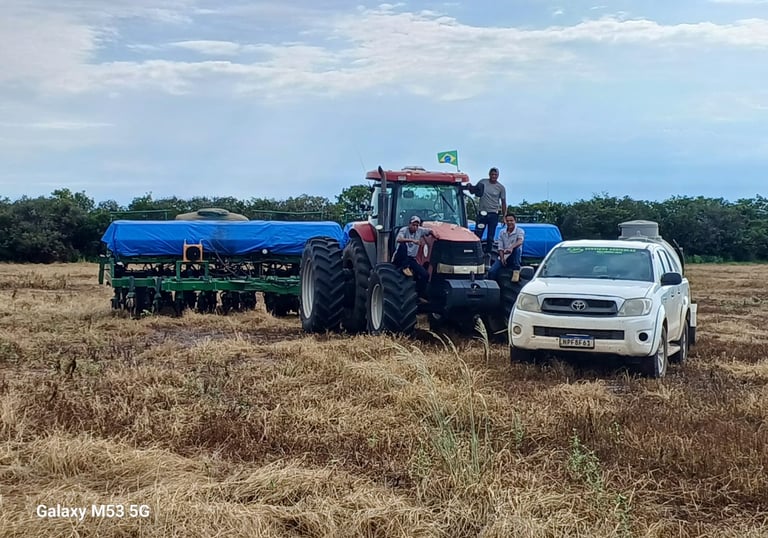 Imagens do nosso maquinário em ação no preparo do solo e plantio.